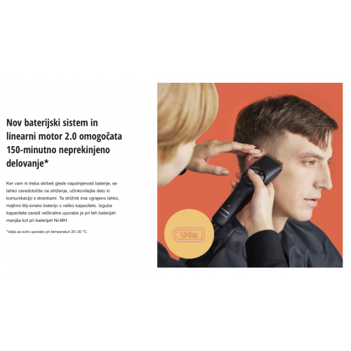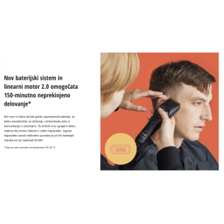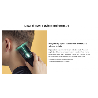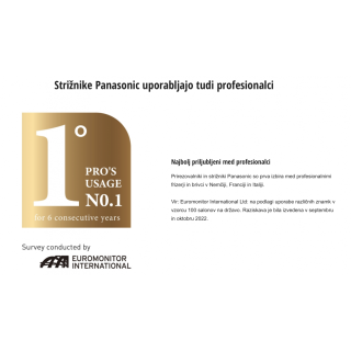 • Čas delovanja: cca 150 minut brezžičnega delovanja (najdaljši čas med vsemi Panasonic strižniki)