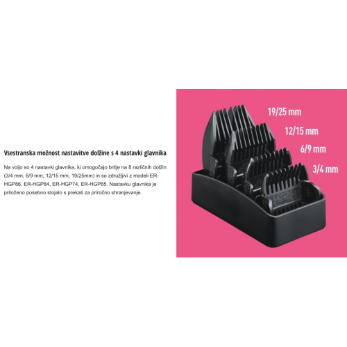 Oglejte si celoten prikaz na uradni slovenski strani Panasonic: https://www.panasonic.com/si/consumer/osebna-higiena/profesionalni-strizniki/er-hgp90.html