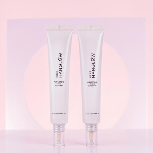 HanGlow - PerfecTone - Tinted Sunscreen SPF 50+ - 01 združuje tri funkcije v enem izdelku: zaščito pred soncem, nego kože in takojšen polepševalni učinek. Več kot le klasičen SPF – PerfecTone nudi celovito nego, saj vlaži, pomirja, pomaga zmanjševati pigmentne madeže ter ščiti pred škodljivimi UV-žarki. Obogaten je z niacinamidom, izvlečkom riža in filtratom polžje sluzi, ki zagotavljajo intenzivno vlaženje, podpirajo regeneracijo in posvetljujejo neenakomerno pigmentacijo. Izvleček houttuynie cordate in centelle asiatice poskrbita za protivnetne in pomirjujoče lastnosti, medtem ko mineralni pigmenti v trenutku poenotijo ten kože ter ji podarijo naraven, lahek make-up učinek z nežnim sijajem. Svilnata tekstura je pakirana v higienski in enostavni tubi. Formula ne pušča belega filma. Na voljo v dveh odtenkih – odtenek 01 je namenjen svetlim tenom kože.
